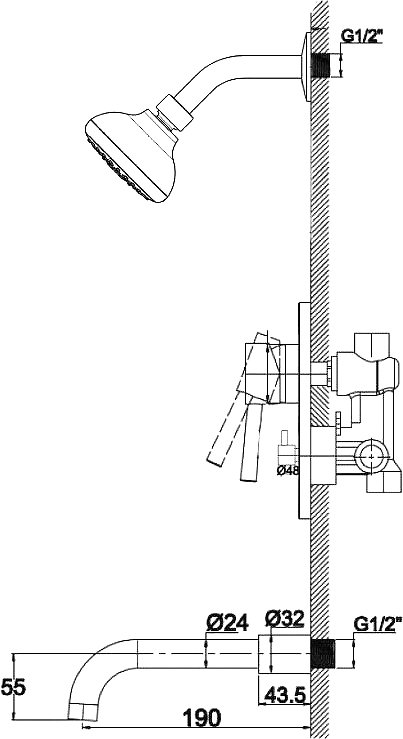 Душевой комплект Haiba HB80297-2 С ВНУТРЕННЕЙ ЧАСТЬЮ
