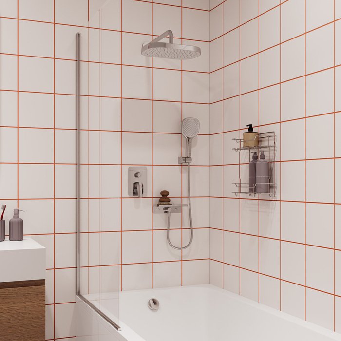 В комплекте есть все необходимое для использования сразу после установки: душевой шланг (1,5 м) в оплетке из нержавеющей стали; тропический душ и трехрежимная ручная лейка с режимом работы «водный туман» для максимального расслабления. Выход для шланга интегрирован с небольшой полочкой – на ней можно разместить любимые косметические средства.