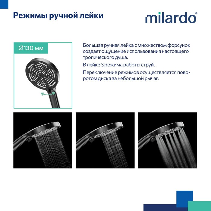 Все, что нужно, чтобы начать пользоваться сразу, уже есть в комплекте: ПВХ-шланг (1,5 м), выход для шланга, ручная лейка и тропический душ.