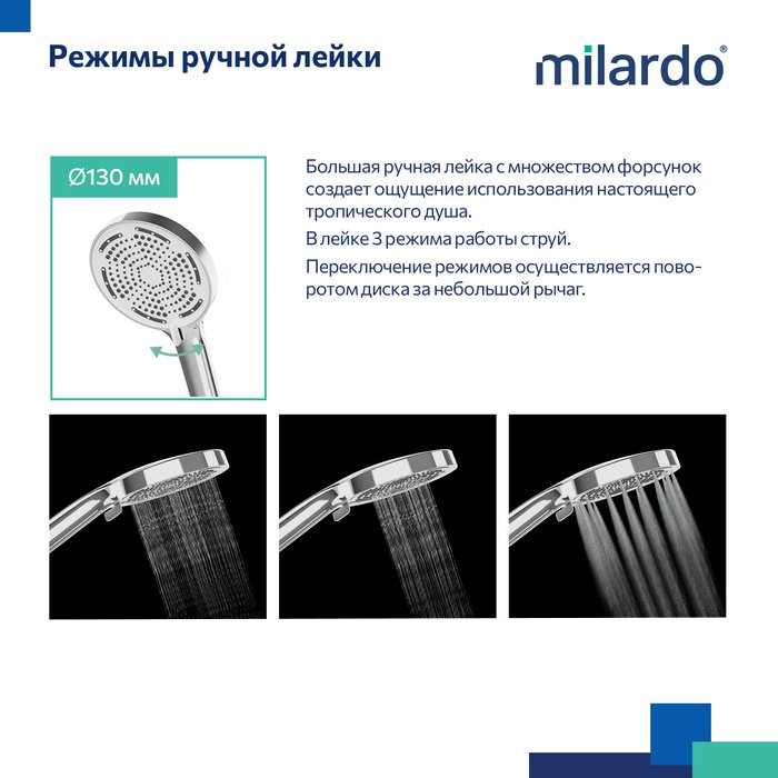 Все, что нужно, чтобы начать пользоваться сразу, уже есть в комплекте: ПВХ-шланг (1,5 м), выход для шланга, ручная лейка и тропический душ.