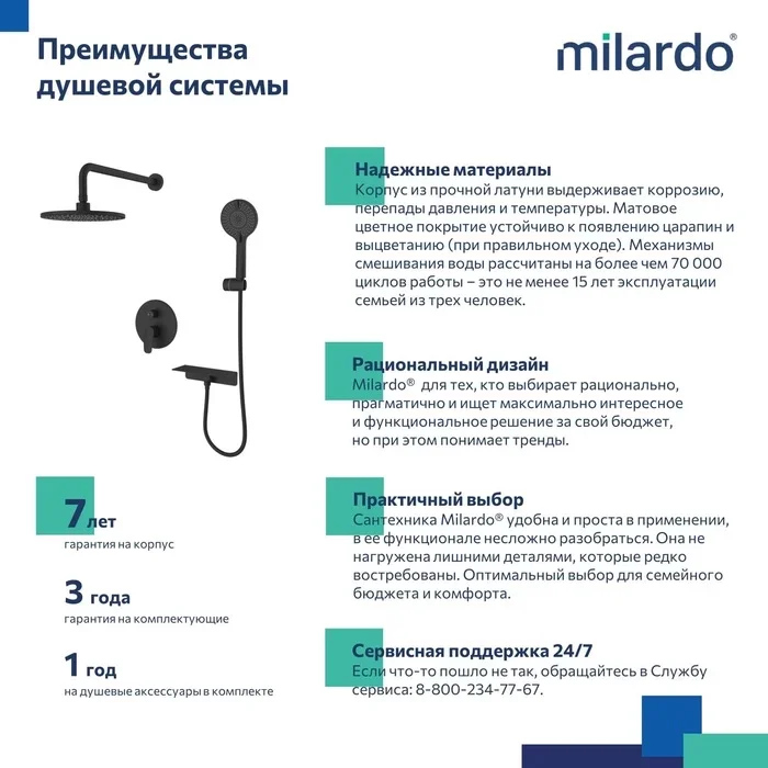 Отзывы о Душевой комплект Milardo Rora RORBL02M67 С ВНУТРЕННЕЙ ЧАСТЬЮ, черный матовый