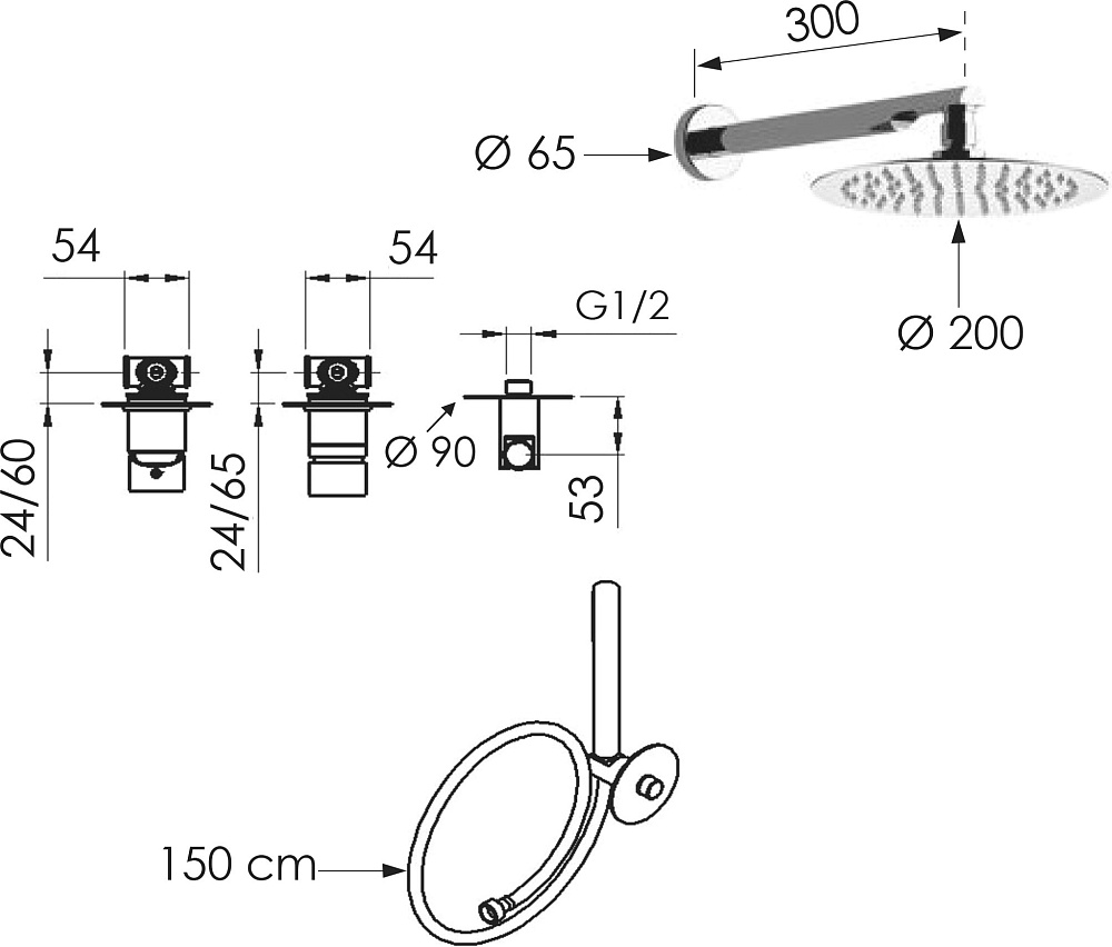 Встраиваемые душевые комплекты