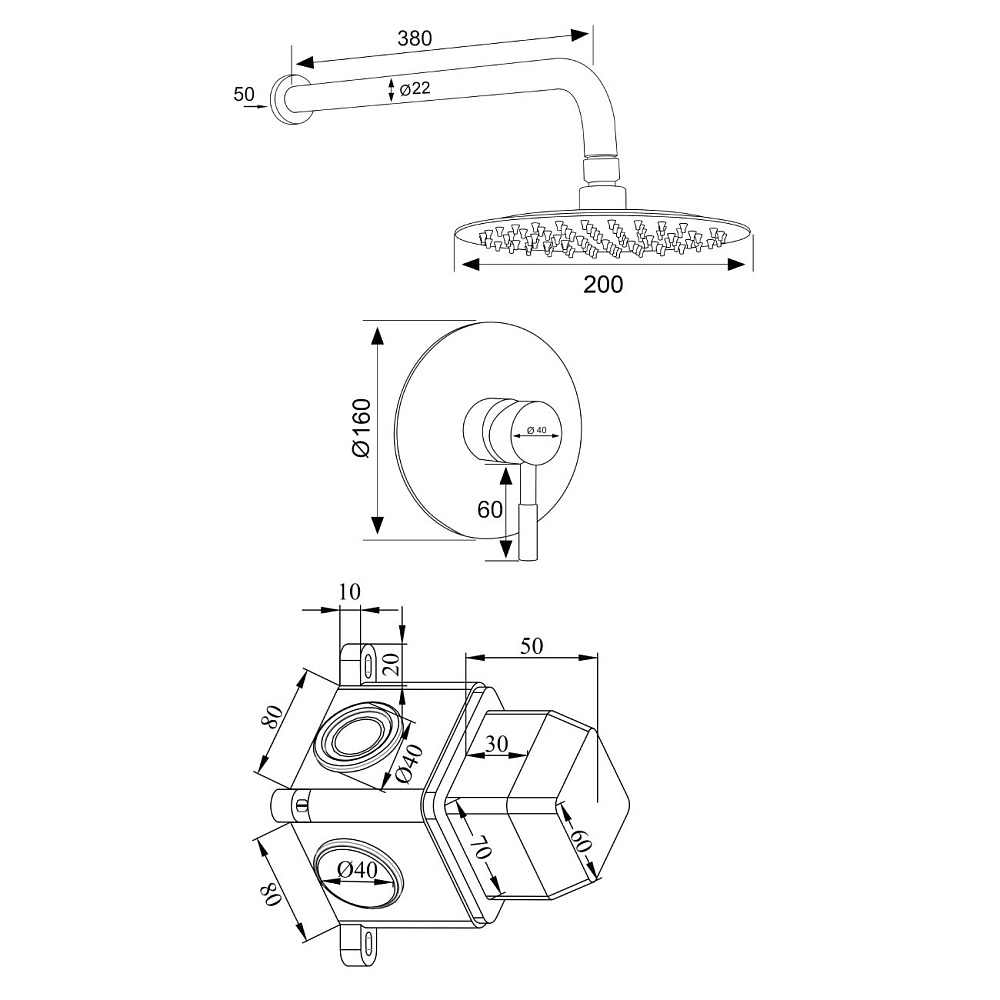 Душевой комплект РМС Sus129 SUS129-1 С ВНУТРЕННЕЙ ЧАСТЬЮ, для душа, нержавеющая сталь