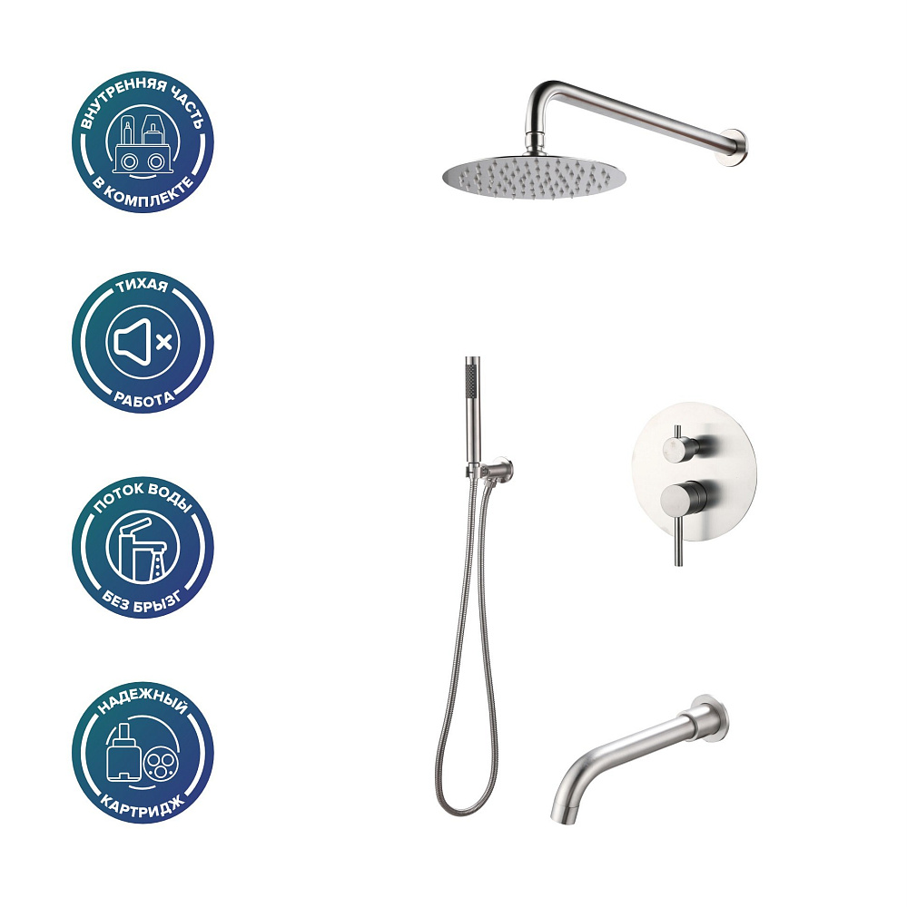 Душевой комплект РМС Sus129 SUS129-1S С ВНУТРЕННЕЙ ЧАСТЬЮ, для ванны с душем, нержавеющая сталь