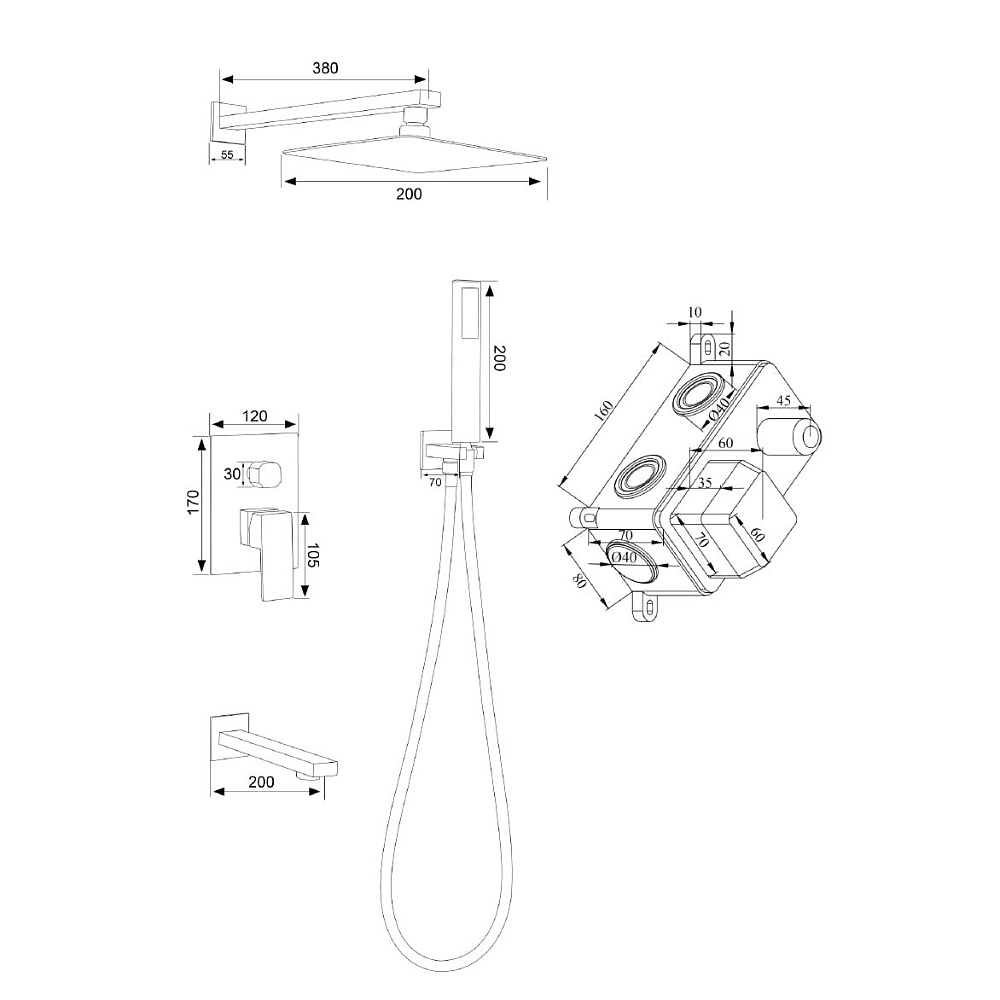 держатель для душа / душевая лейка / душевой шланг / кронштейн для верхнего душа / переключатель потоков