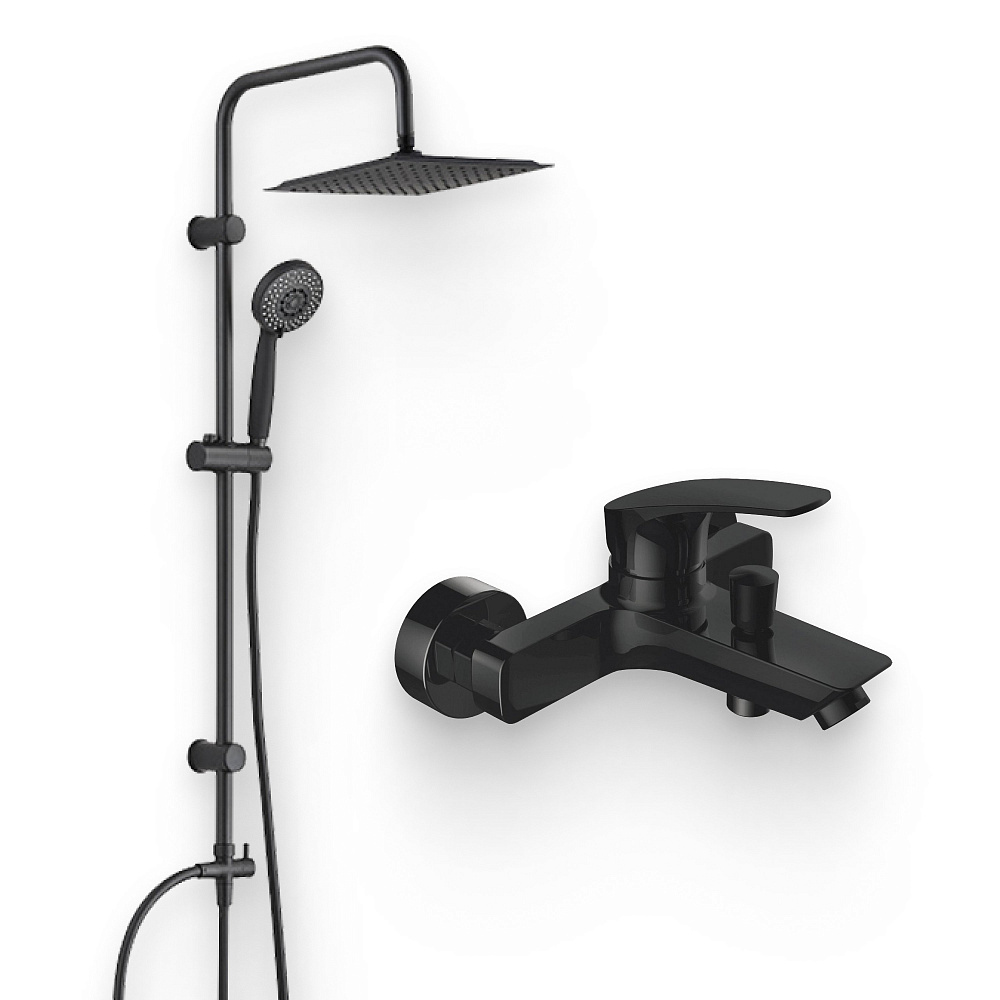 Душевой комплект Смеситель Aquanet Static AF330-20B + Стойка Passion AF300-70-S-B