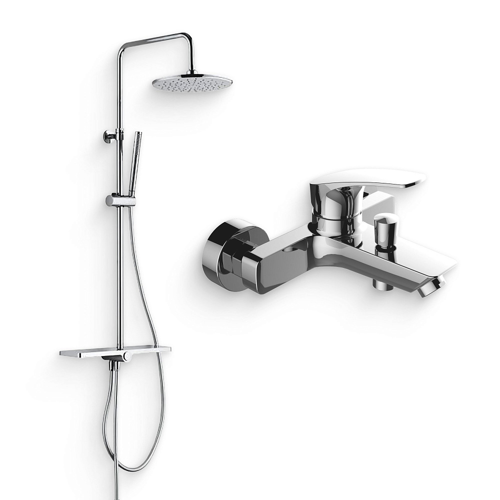 Душевой комплект Смеситель Aquanet Static AF330-20C + Стойка Pragmatic AF430-70-R-C