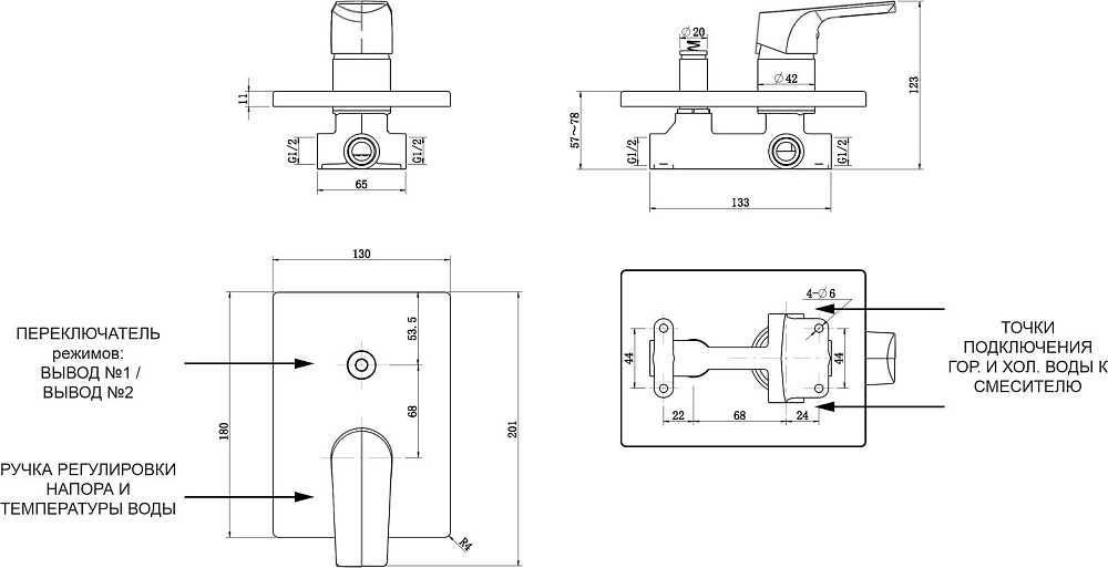 Встраиваемые душевые комплекты