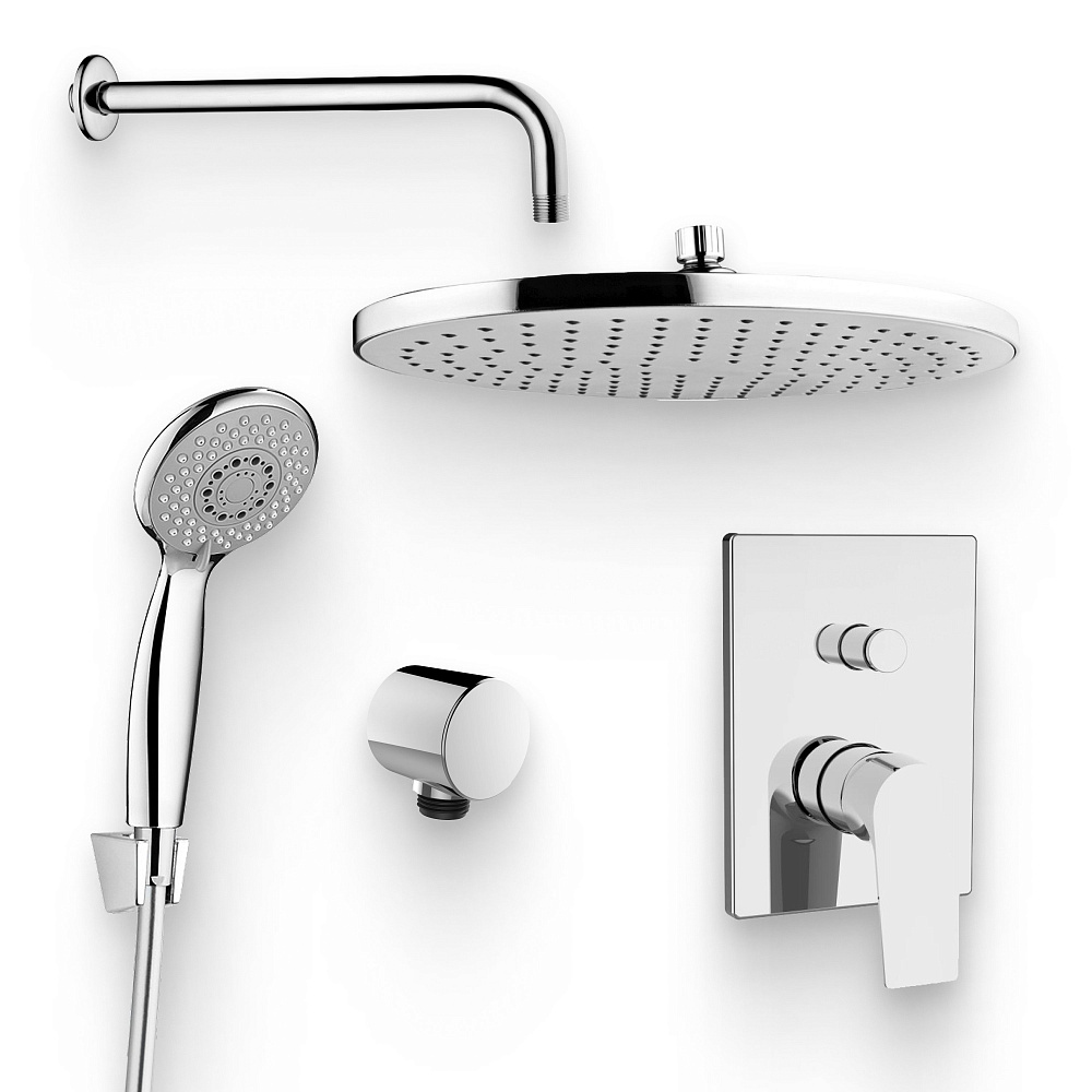 Душевой комплект Смеситель Aquanet Static AF330-51C С ВНУТРЕННЕЙ ЧАСТЬЮ + Душевая лейка AF000-07C + Подключение AF000-11C хром + Душ Lemark Poseidon LM8037C + Кронштейн LM8029C