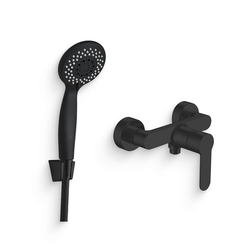 Душевой комплект Смеситель для душа Aquanet Passion AF300-30B черный + Душевая лейка AF000-07B чёрная матовая