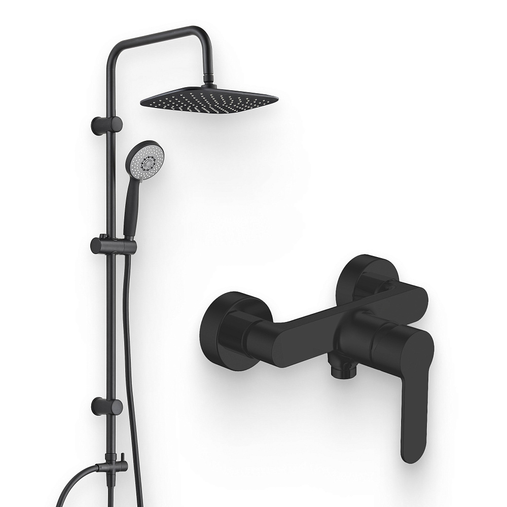 Душевой комплект Смеситель для душа Aquanet Passion AF300-30B черный + Стойка AF300-70-RC-B черная