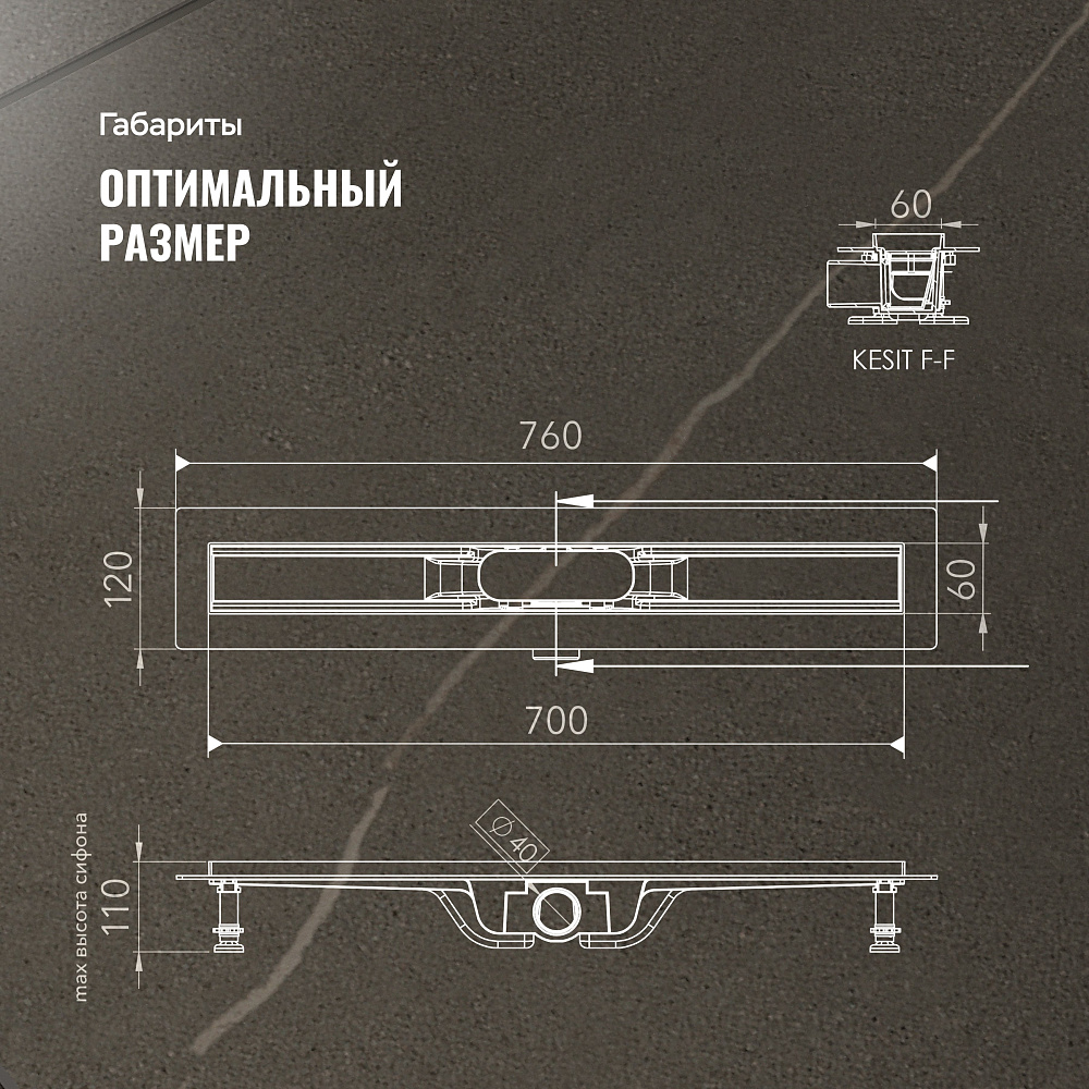 Душевой лоток CK DRAIN AQPL10-70 Stick 70 см, решетка из нержавеющей стали