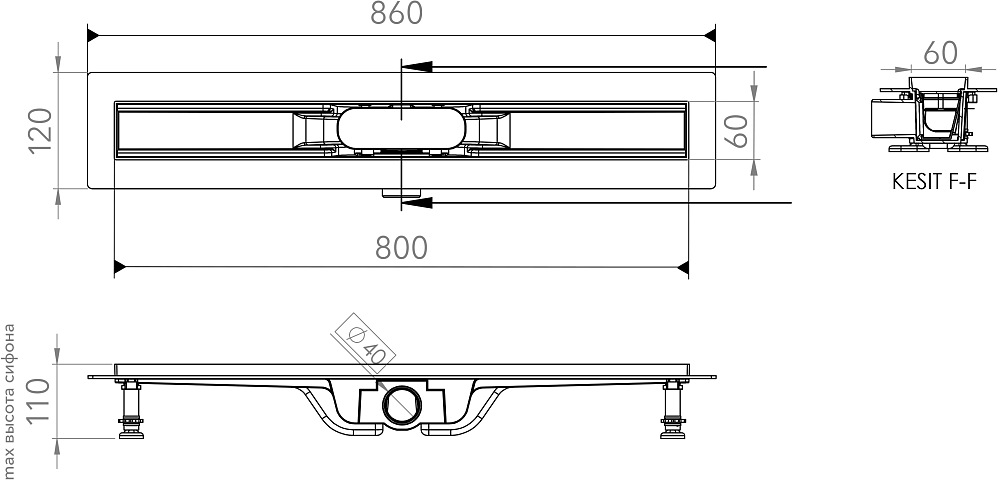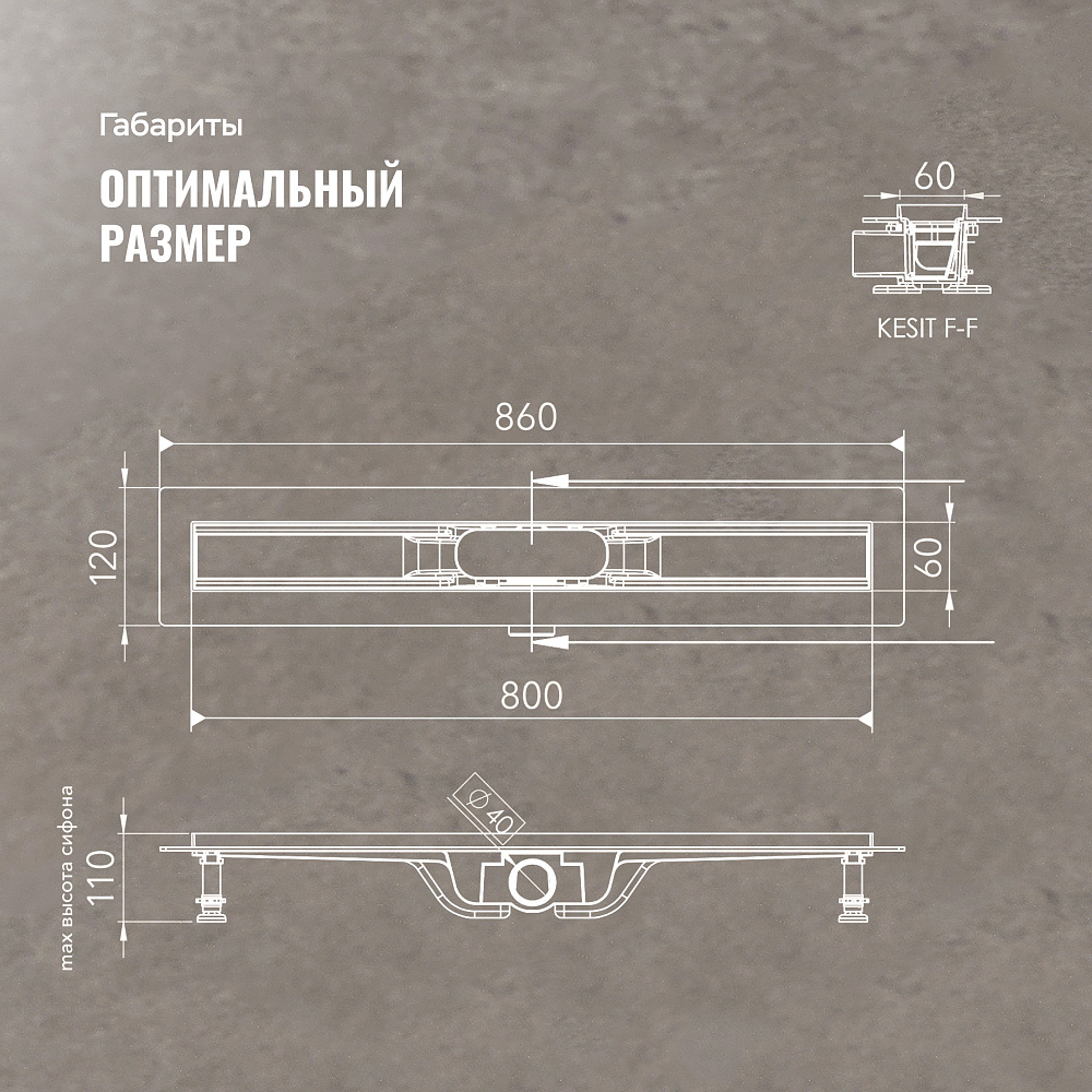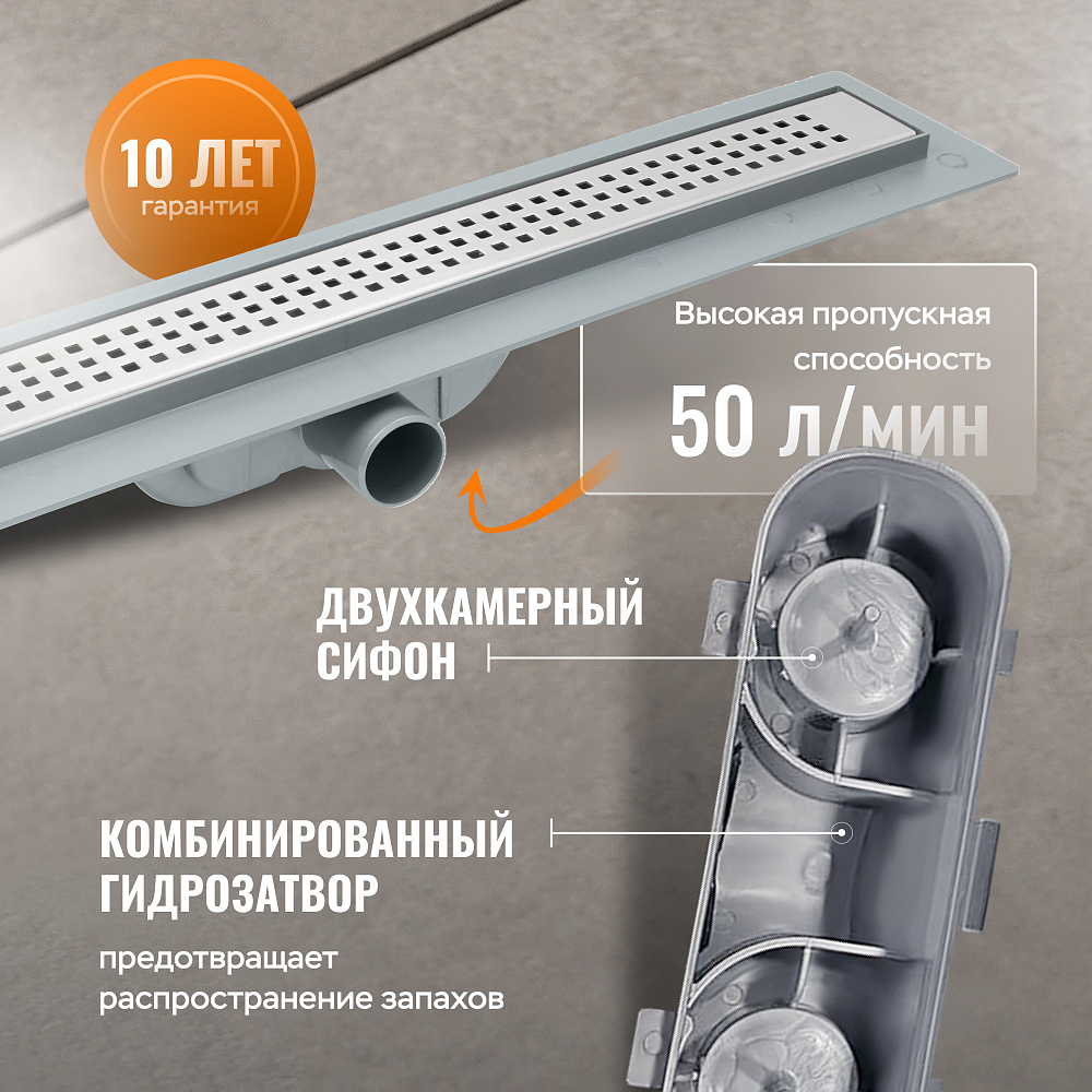 Душевой лоток CK DRAIN AQPL10-80 Cube 80 см, решетка из нержавеющей стали