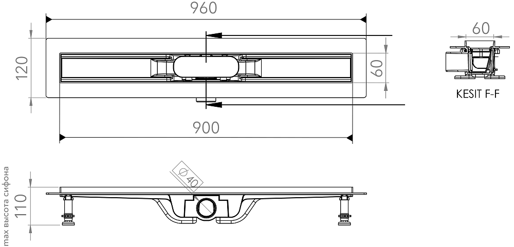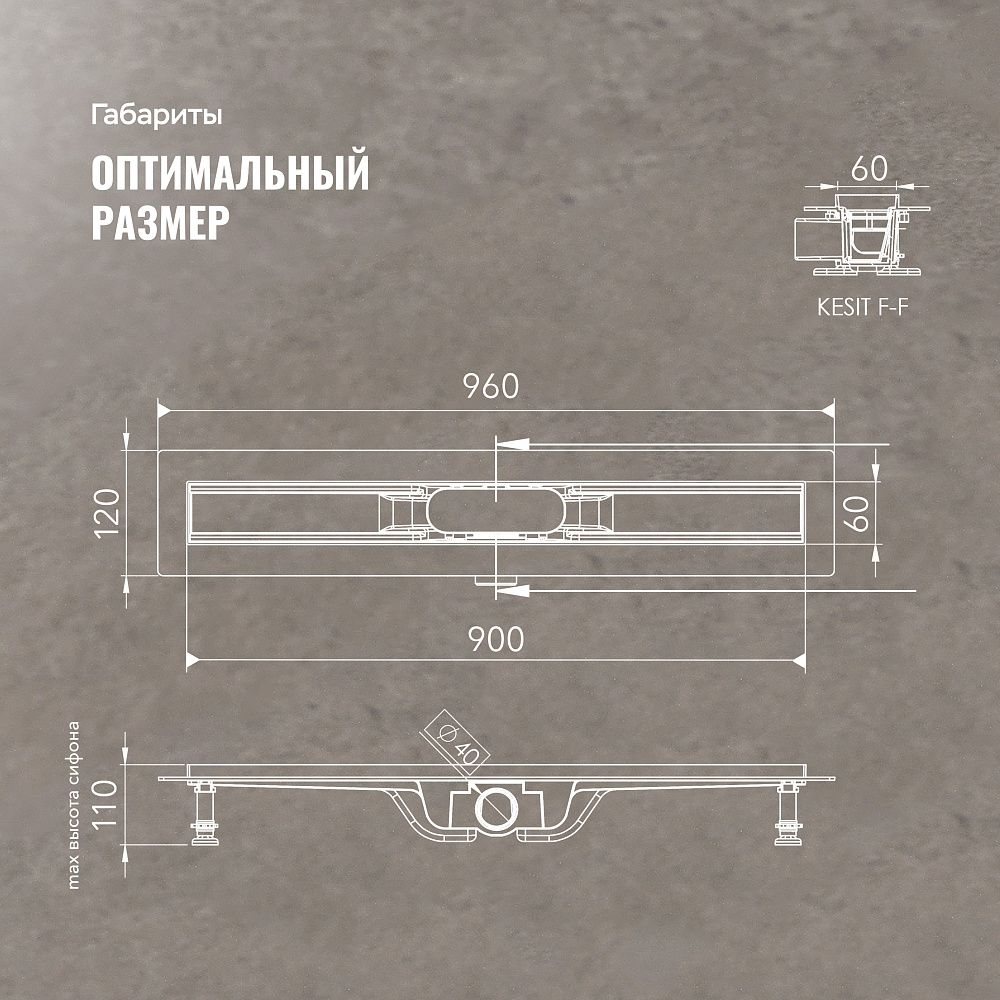 Душевой лоток CK DRAIN AQPL10-90 Cube 90 см, решетка из нержавеющей стали