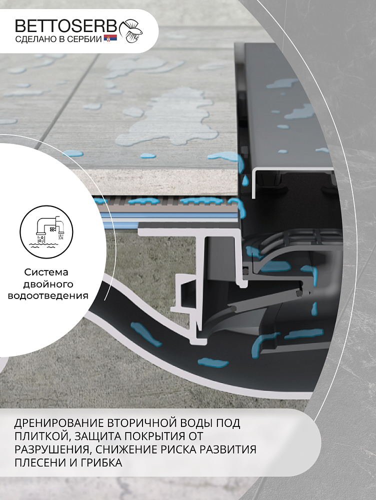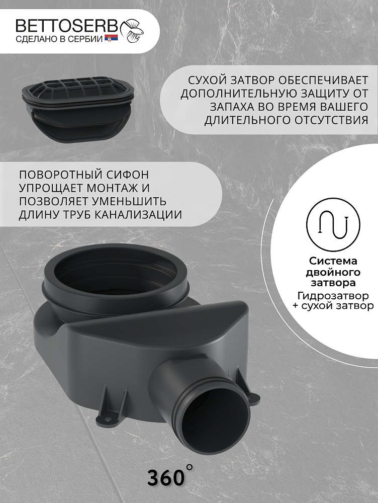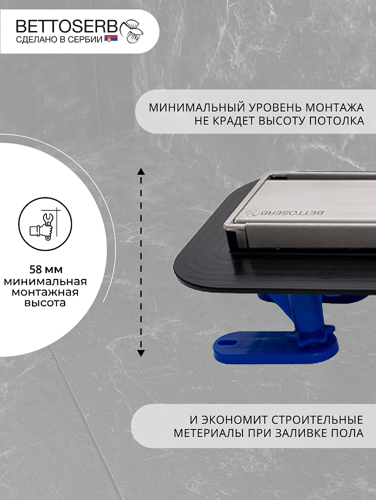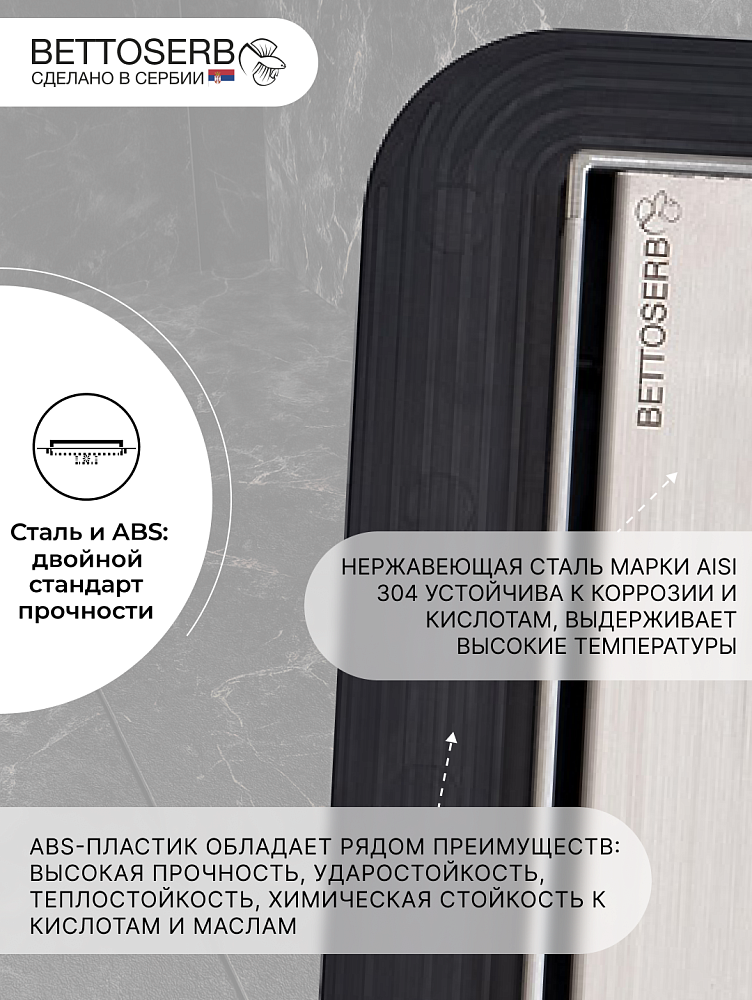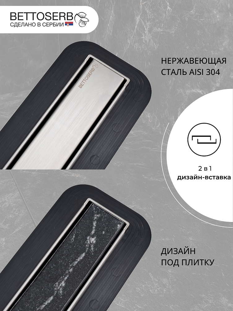 Душевой трап (лоток) BETTOSERB 750 хром — это идеальное решение для создания стильного и функционального душа в вашей ванной комнате. Эта модель предлагает два дизайна в одном изделии, что позволяет выбрать оптимальный вариант под ваш интерьер. С одной стороны душевой лоток имеет полое пространство, идеально подходящее для укладки плитки, а с другой стороны выполнен из металла, добавляя современности и элегантности дизайну. Одной из ключевых особенностей душевого трапа BETTOSERB 750 является S-образный сифон, который эффективно предотвращает проникновение неприятных запахов из канализации в помещение. Это обеспечивает комфорт и свежесть в ванной комнате, создавая приятную атмосферу для релаксации и отдыха. Кроме того, душевой лоток BETTOSERB 750 обладает удобной регулировкой высоты и наклона за счёт опор, входящих в комплект. Это позволяет легко адаптировать трап под индивидуальные потребности и особенности вашей ванной комнаты, обеспечивая оптимальную работу и долговечность системы. Выбирая душевой трап (лоток) BETTOSERB 750 хром, вы получаете не только высококачественное и надёжное изделие, но и возможность создать уникальный и стильный дизайн вашей ванной комнаты. Эта модель сочетает в себе функциональность, эстетику и удобство использования, делая её идеальным выбором для любого дома.