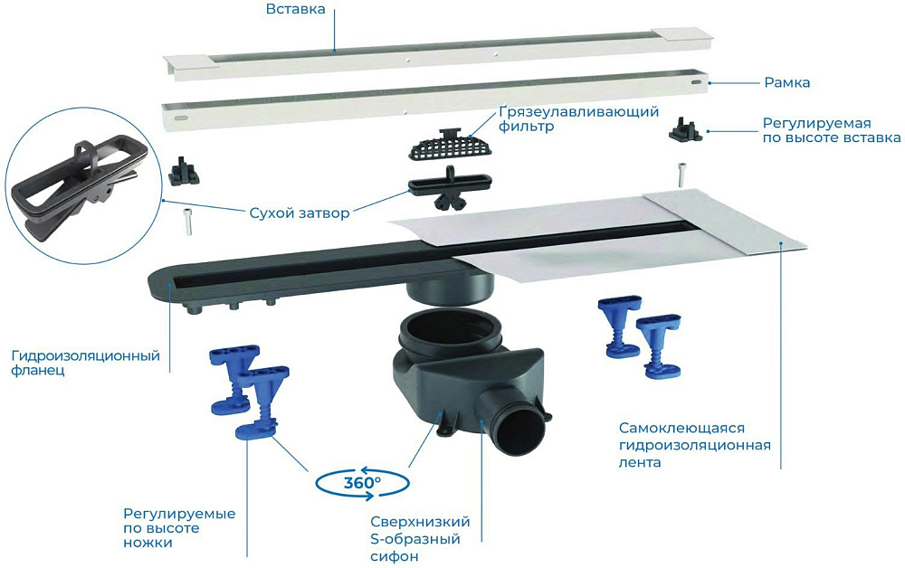Душевой трап BETTOSERB Advanced Slim 850 матовый хром — это надёжное и стильное решение для вашей ванной комнаты. Корпус из прочного ABS-пластика обеспечивает долговечность и устойчивость к механическим повреждениям. Дизайн-вставка Slim гармонично вписывается в интерьер и придаёт ему современный вид.Установка и обслуживание трапа не вызовут затруднений благодаря продуманной конструкции. Соединение с канализационной трубой DN 50 гарантирует надёжность и герметичность. Поворотный сифон на 360° обеспечивает лёгкость монтажа и удобство эксплуатации.Регулируемая по высоте дизайн-вставка позволяет адаптировать трап под различные уровни пола, что делает его универсальным решением для любого помещения. Комбинированный затвор (сухой и гидро) предотвращает проникновение неприятных запахов из канализации, обеспечивая комфорт и свежесть в ванной комнате. Матовый хром придаёт трапу стильный и современный вид, который гармонично впишется в любой интерьер.