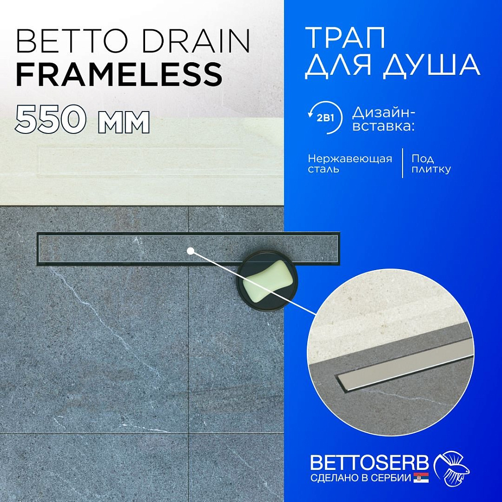 Душевой трап (лоток) BETTOSERB Frameless Line 550 Drain — это идеальное решение для создания стильного и функционального душевого пространства. Модель представлена в двух дизайнах: с одной стороны — матовый хром, с другой — полая поверхность, которая позволяет легко уложить керамическую плитку. Благодаря S-образному сифону, разработанному с высокой степенью функциональности, этот душевой трап предотвращает проникновение запахов из канализации, обеспечивая комфорт и свежесть в вашей ванной комнате. Возможность регулировки высоты и наклона трапа за счёт опор, входящих в комплект, позволяет легко адаптировать его под ваши потребности и особенности помещения. Это гарантирует идеальную посадку и надёжность конструкции. Допустимая толщина керамической плитки составляет 12 мм, что делает этот душевой трап совместимым с различными видами отделки. Вы можете быть уверены, что он прослужит вам долгие годы, сохраняя свой первоначальный вид и функциональность. Система слива конденсата в канализацию или сток обеспечивает эффективное удаление влаги, предотвращая образование плесени и грибка. Это способствует созданию более здоровой и гигиеничной атмосферы в вашей ванной комнате. Выбирая душевой трап (лоток) BETTOSERB Frameless Line 550 Drain, вы получаете не только высококачественный и функциональный продукт, но и возможность создать уникальный и стильный дизайн вашей ванной комнаты. Этот трап станет прекрасным дополнением к любому интерьеру, обеспечивая комфорт и удобство в использовании.