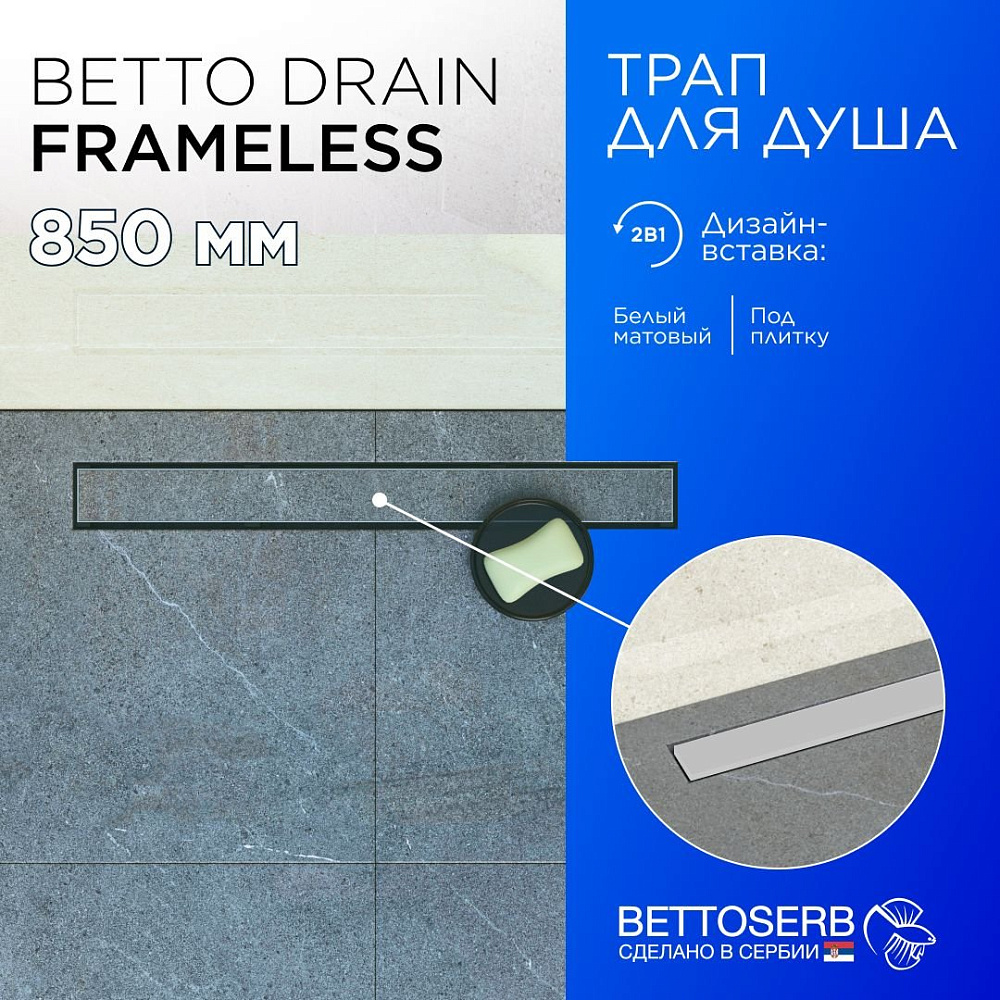 Душевой трап BETTOSERB Frameless Line 850 в белом матовом исполнении — это стильное и практичное решение для вашей ванной комнаты. Модель отличается оригинальным дизайном: двусторонняя дизайн-вставка позволяет сочетать трап с различными стилями отделки. С одной стороны — элегантный матовый белый цвет, с другой — предусмотрено место под плитку, что даёт возможность гармонично вписать трап в любой интерьер.Благодаря продуманной конструкции, в трапе BETTOSERB Frameless Line 850 используется S-образный самоочищающийся сифон с покрытием Self-Cleaning. Это обеспечивает надёжную работу и лёгкость в уходе. Вы сможете забыть о засорах и необходимости частого обслуживания.Модель BETTOSERB Frameless Line 850 отличается универсальностью и функциональностью. Благодаря возможности регулировки высоты и наклона трапа за счёт опор, входящих в комплект, вы сможете адаптировать его под любые условия и особенности вашей ванной комнаты. Это делает трап BETTOSERB Frameless Line 850 идеальным выбором для любого проекта.Кроме того, благодаря комбинированному затвору ваша ванна будет надёжно защищена от неприятных запахов из канализации. Это обеспечивает дополнительный комфорт и гигиеничность использования. Душевой трап BETTOSERB Frameless Line 850 — это не только практичность, но и стильный акцент в вашей ванной комнате.