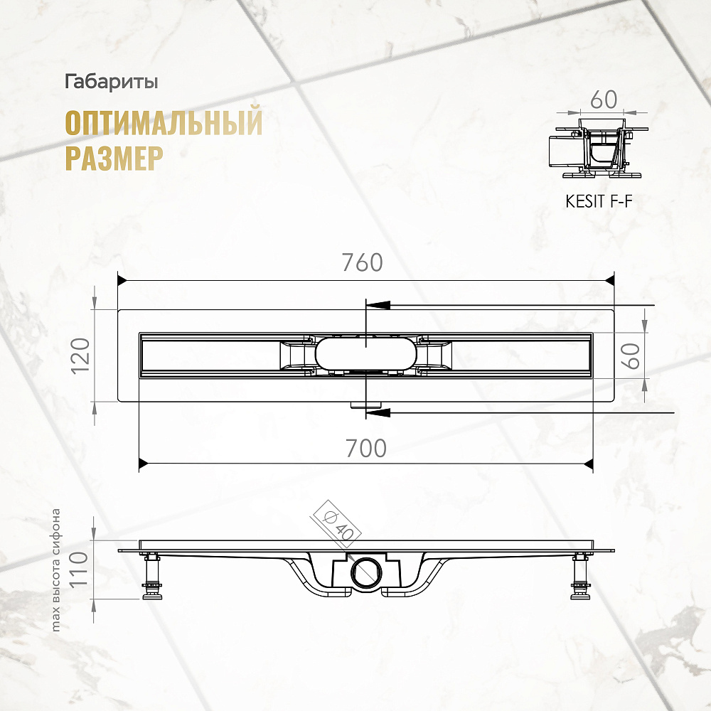 Отзывы о Душевой трап (лоток) CK DRAIN AQCP11-70 Plain GOLD глянец 70 см, щелевая решетка из нержавеющей стали, золото, с рамкой