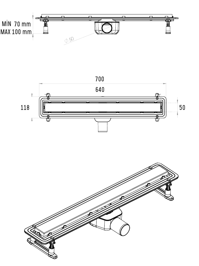 Душевой трап (лоток) CK DRAIN Valens 1109-10065 65 см, решетка глянцевый хром, с сифоном, под плитку