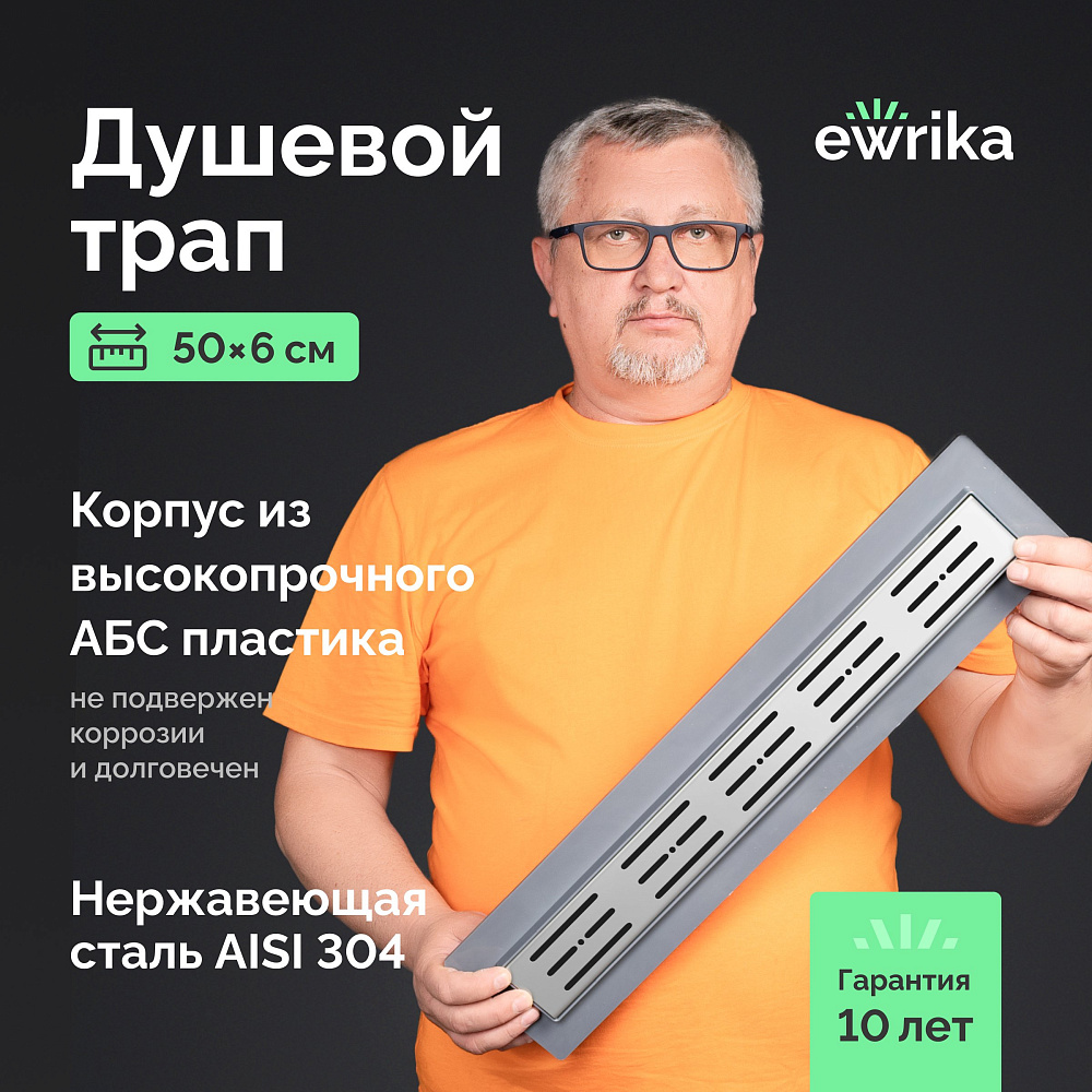 Отзывы о Душевой трап (лоток) EWRIKA 50 см с решеткой Rain, хром