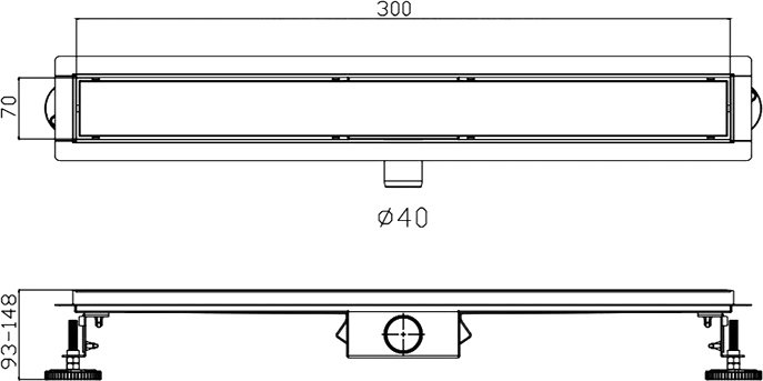 Душевой трап (лоток) Haiba HB93300 30 см, с решеткой и опорами, сатин