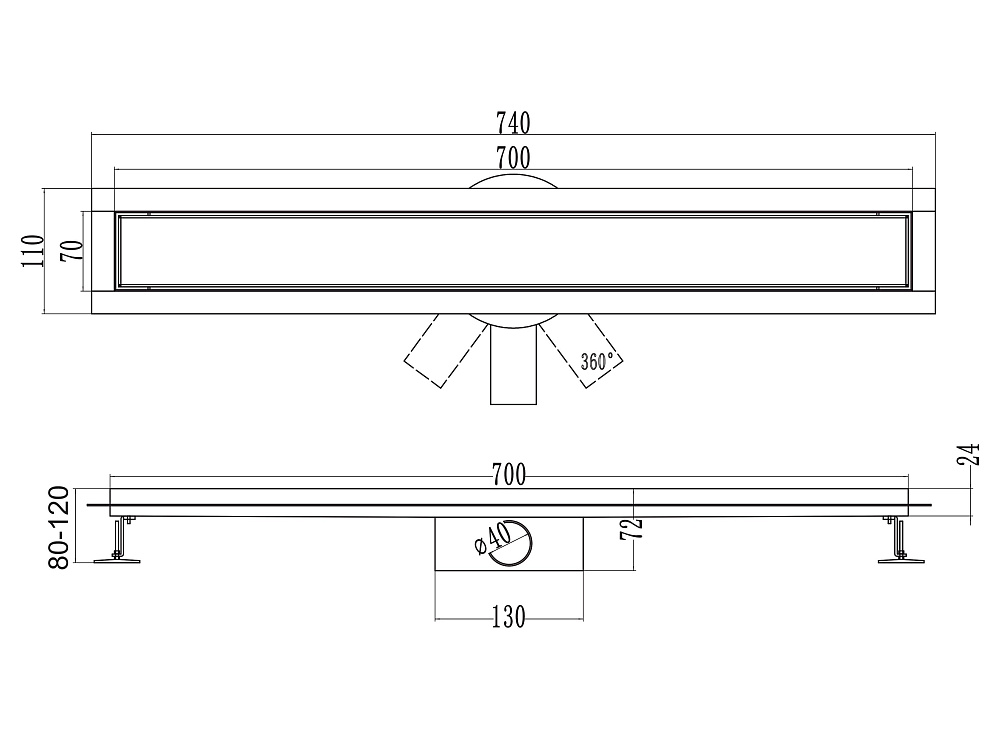 Душевой трап (лоток) РМС ТЛ-02 70 см