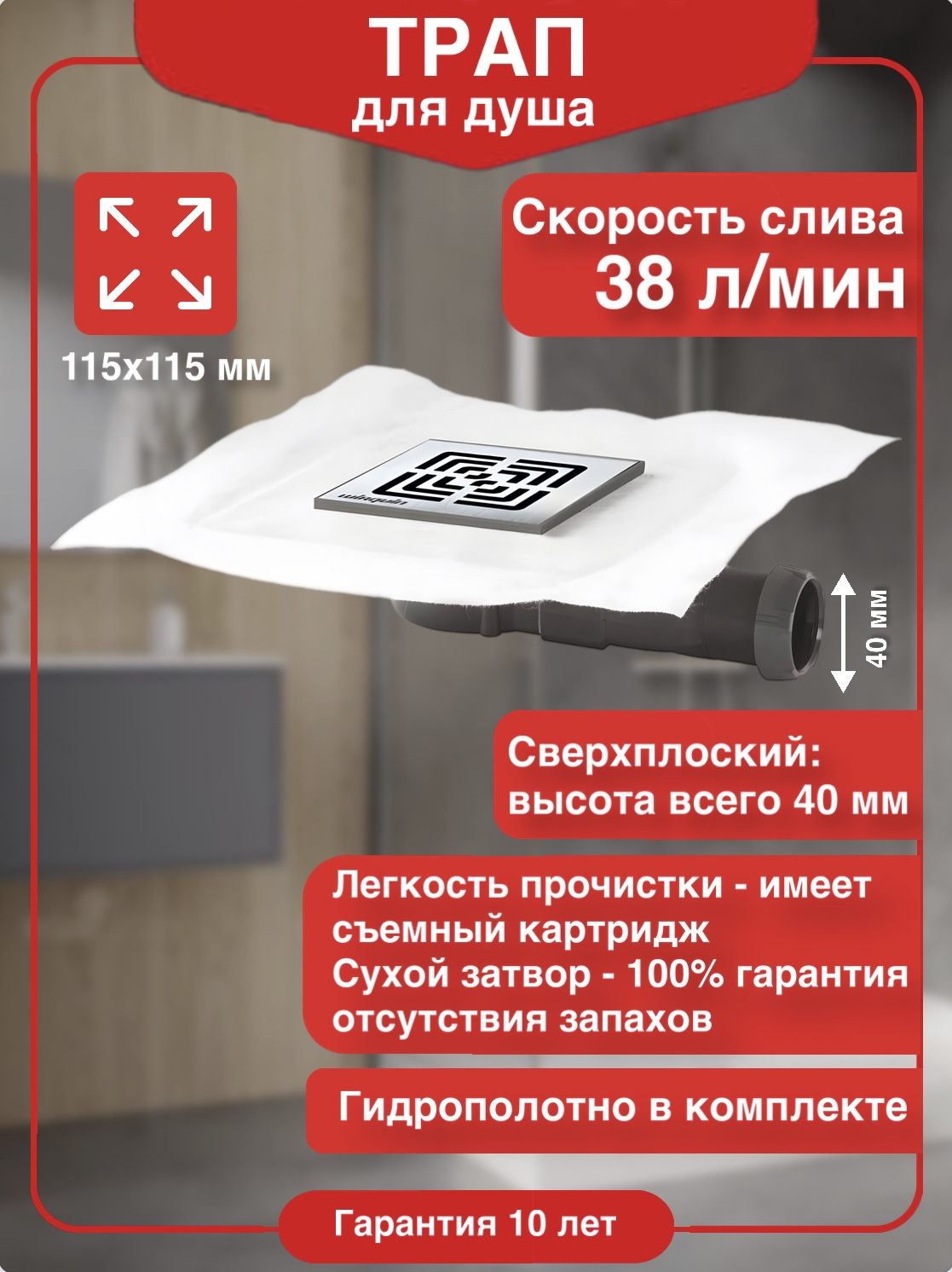 Душевой трап Wirquin Slim 30722011 — это идеальное решение для создания стильного и функционального душевого уголка в вашей ванной комнате. Он объединяет в себе передовые технологии и продуманный дизайн, чтобы обеспечить комфорт и надёжность на долгие годы. Одной из ключевых особенностей этого трапа является его плоский сифон высотой всего 4 см. Благодаря такой компактной конструкции, он не занимает много места и позволяет оптимально использовать пространство под душевой зоной. Это особенно актуально для небольших ванных комнат, где каждый сантиметр на счету. Ещё одним важным преимуществом является наличие сухого затвора в плоском сифоне. Сухой затвор предотвращает проникновение неприятных запахов из канализации, обеспечивая тем самым свежесть и комфорт в вашей ванной комнате. Регулировка решётки по высоте — это ещё одна удобная функция, которая делает душевой трап Wirquin Slim максимально адаптируемым к различным условиям. Вы можете легко установить его даже если толщина плитки, которой вы планируете облицевать зону вокруг трапа, составляет от 7 до 12 мм. Это гарантирует, что трап будет идеально сочетаться с вашим интерьером и не вызовет проблем при монтаже. Дополнительная гидроизоляция, обеспеченная уплотнением из полистирола и стекловолокна, является ещё одним важным аспектом, который гарантирует долговечность и надёжность трапа. Вы можете быть уверены, что вода будет эффективно отводиться, а риск протечек сведён к минимуму. Душевой трап Wirquin Slim 30722011 — это не просто функциональный элемент сантехники, это стильное и надёжное решение, которое превратит вашу ванную комнату в место комфорта и уюта.