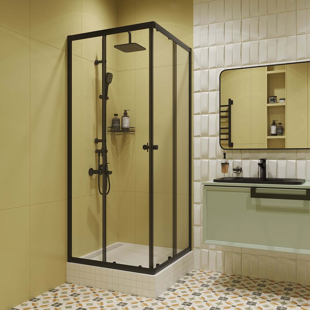 Душевой уголок DIWO Анапа 80х80, профиль черный матовый
