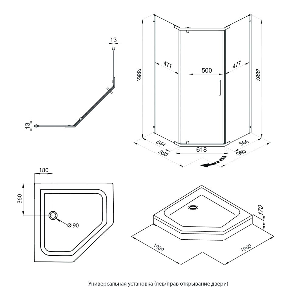 Душевой уголок DIWO Казань 100х100 профиль хром глянцевый