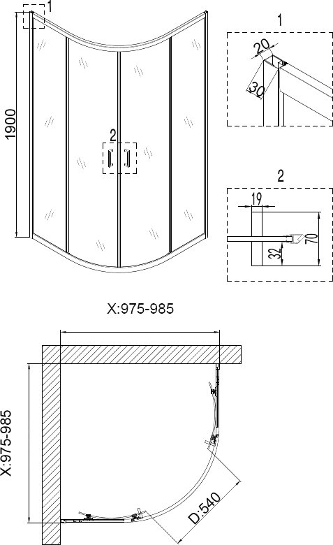 Душевой уголок Niagara Nova NG-6807-08 BLACK 100x100, четверть круга, черный