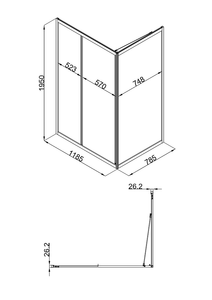 Душевой уголок DUERO DR-128CR-SH-GB-R, прямоугольный, шоверама 1200*800*1950 мм, черный