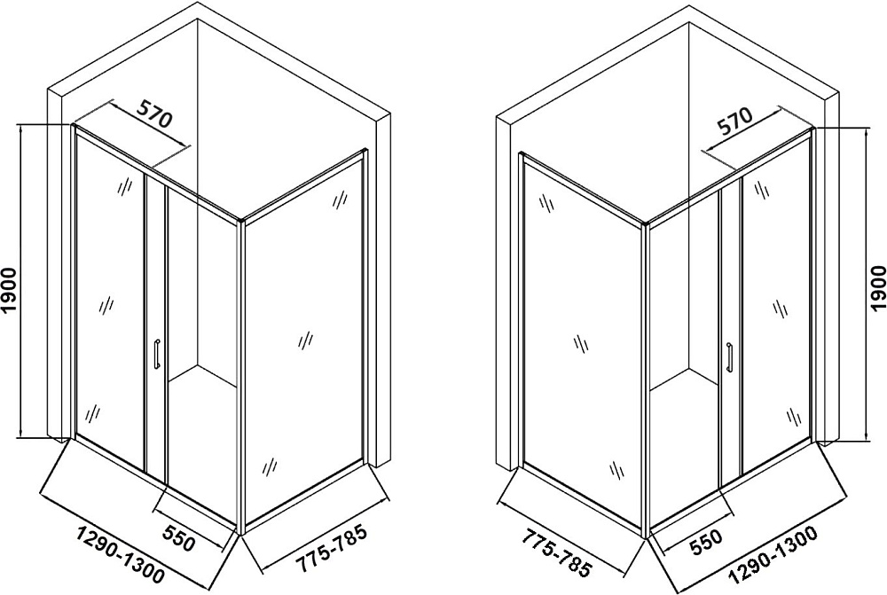 Душевой уголок Orange E23 13080TCR стекло прозрачное, профиль хром