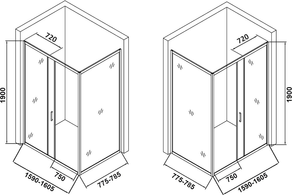 Душевой уголок Orange E23 16080TCR стекло прозрачное, профиль хром