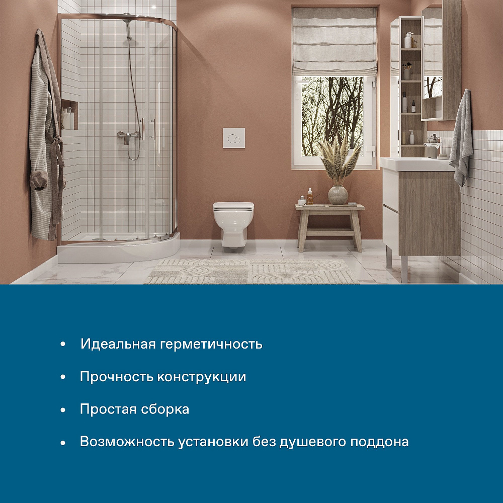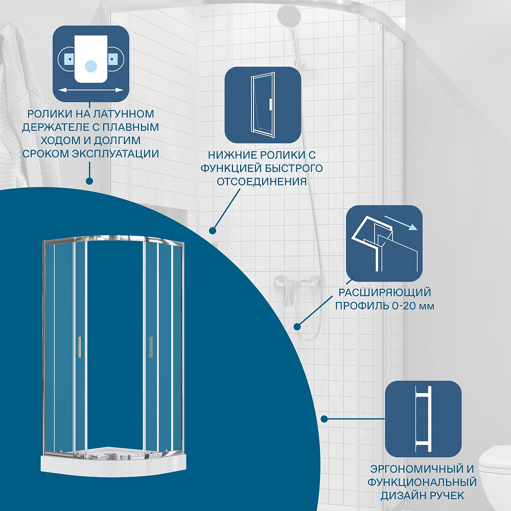 Душевое ограждение Santek Вэлия четверть круга 80x80х195 в исполнении хром с прозрачным стеклом - это надёжное и качественное решение для вашей ванной комнаты. Безопасное закалённое стекло толщиной 6 мм обеспечивает дополнительную устойчивость конструкции. Алюминиевые профили не подвержены коррозии благодаря образованию тонкой оксидной плёнки на поверхности, которая защищает их от окислительных реакций с водой и воздухом. Качественные ролики на латунных держателях выдерживают тяжёлые двери на протяжении всего срока службы изделия и также обладают высокой сопротивляемостью коррозии. Долговечные силиконовые уплотнители сохраняют свои эксплуатационные характеристики на протяжении многих лет, не стираются и не высыхают, оставаясь прочными. Дополнительно расширить пространство и сгладить неровности стен позволяет компенсирующий профиль, который создаёт пространство для расширения до 20 мм. Быстросъемные нижние ролики делают уход за душевым ограждением более быстрым и простым, позволяя промывать нижнюю часть ограждения за счёт дополнительного пространства, возникающего при отсоединении.