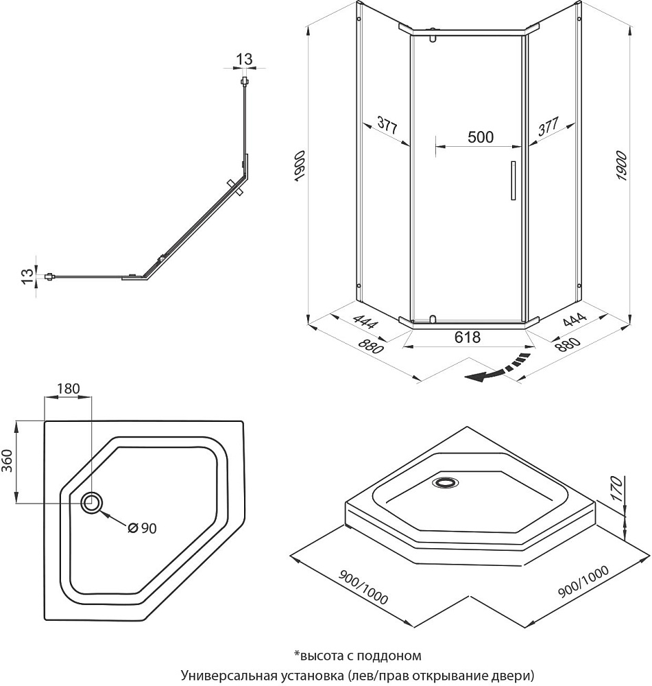 Душевой уголок Triton Дека -Блэк Щ0000059782 90х90, с поддоном, профиль черный