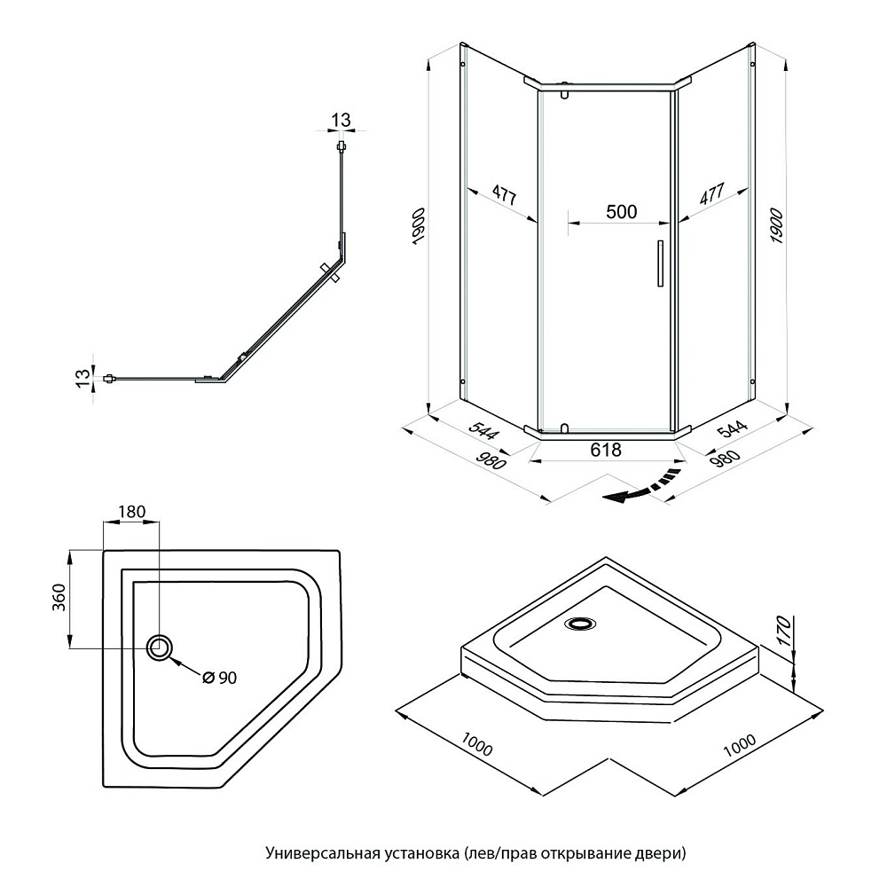 Душевой уголок Triton Дека -Голд 100x100, профиль золото, стекло прозрачное