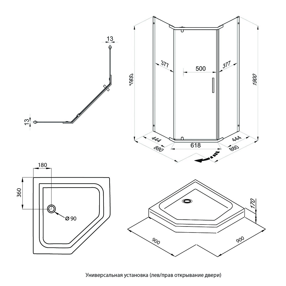 Душевой уголок Triton Дека -Голд 90х90х207, с поддоном, профиль золото, стекло прозрачное