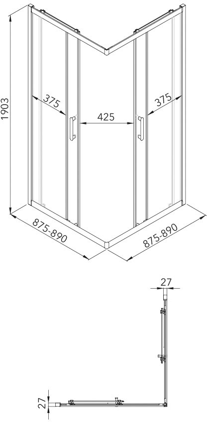 Душевой уголок Triton Фикс 90x90 см, без поддона, профиль профиль матовое золото