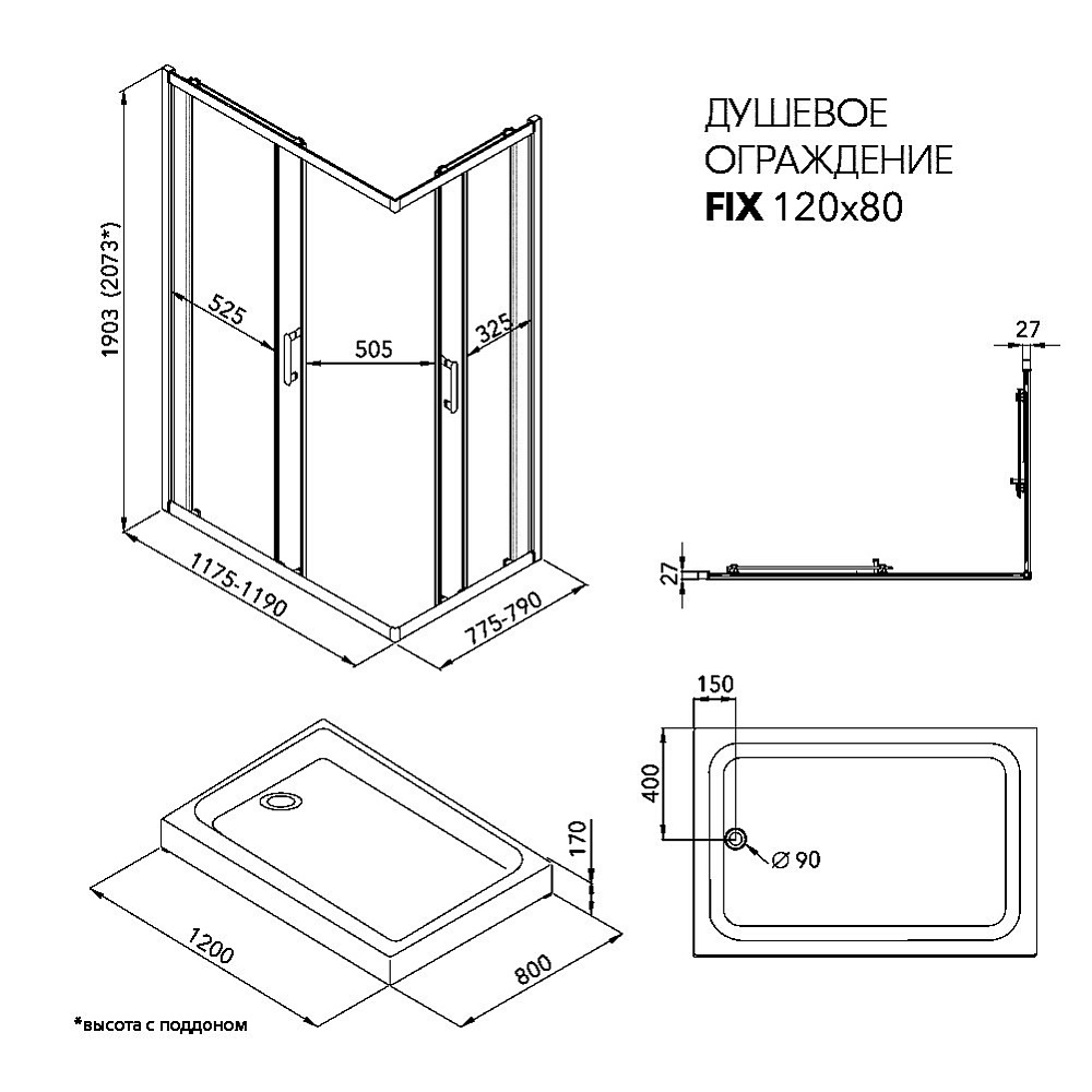 Душевой уголок Triton Фикс Блэк Щ0000077395 120х80 см с поддоном, профиль черный матовый