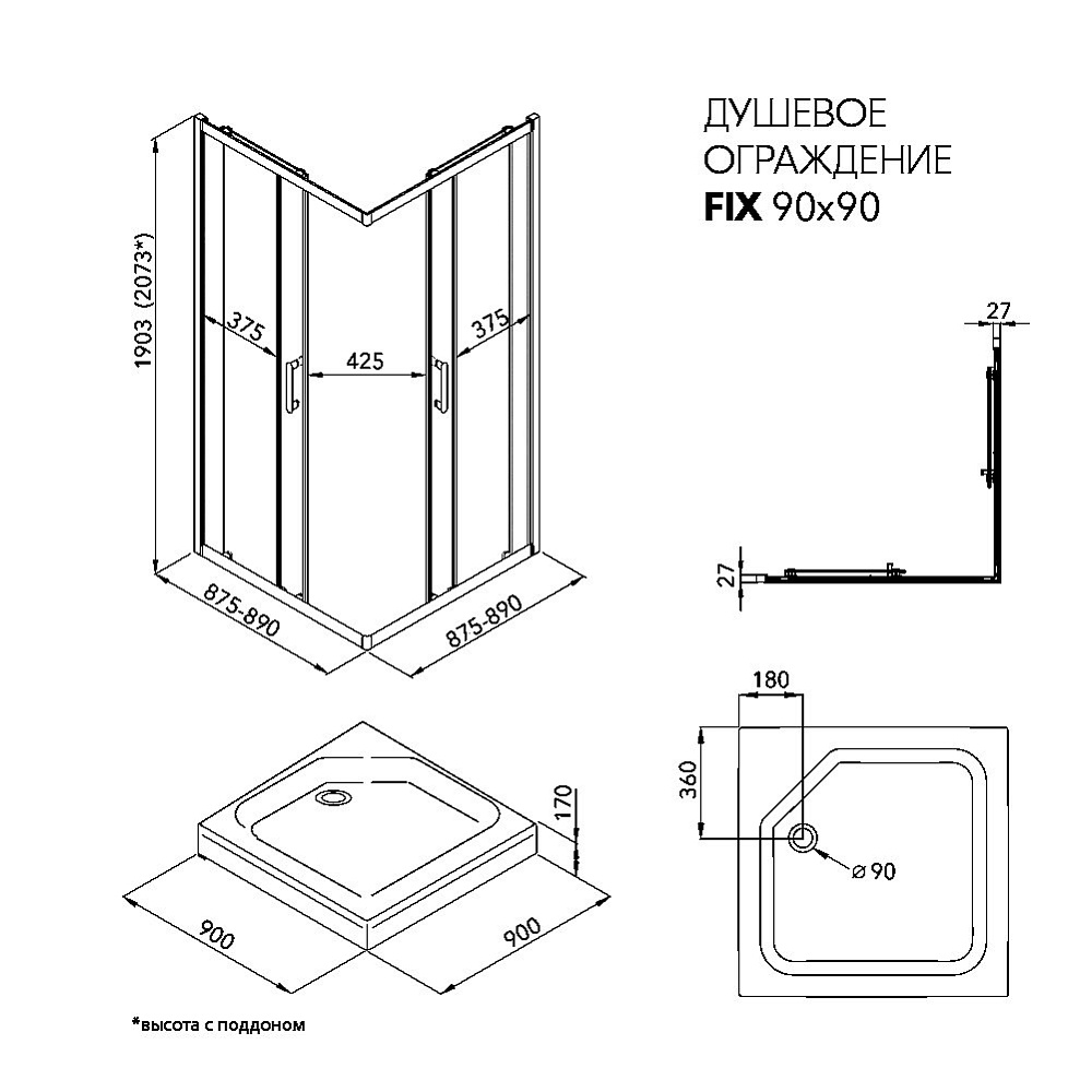 Душевой уголок Triton Фикс Графит Щ0000077408 90х90 см с поддоном