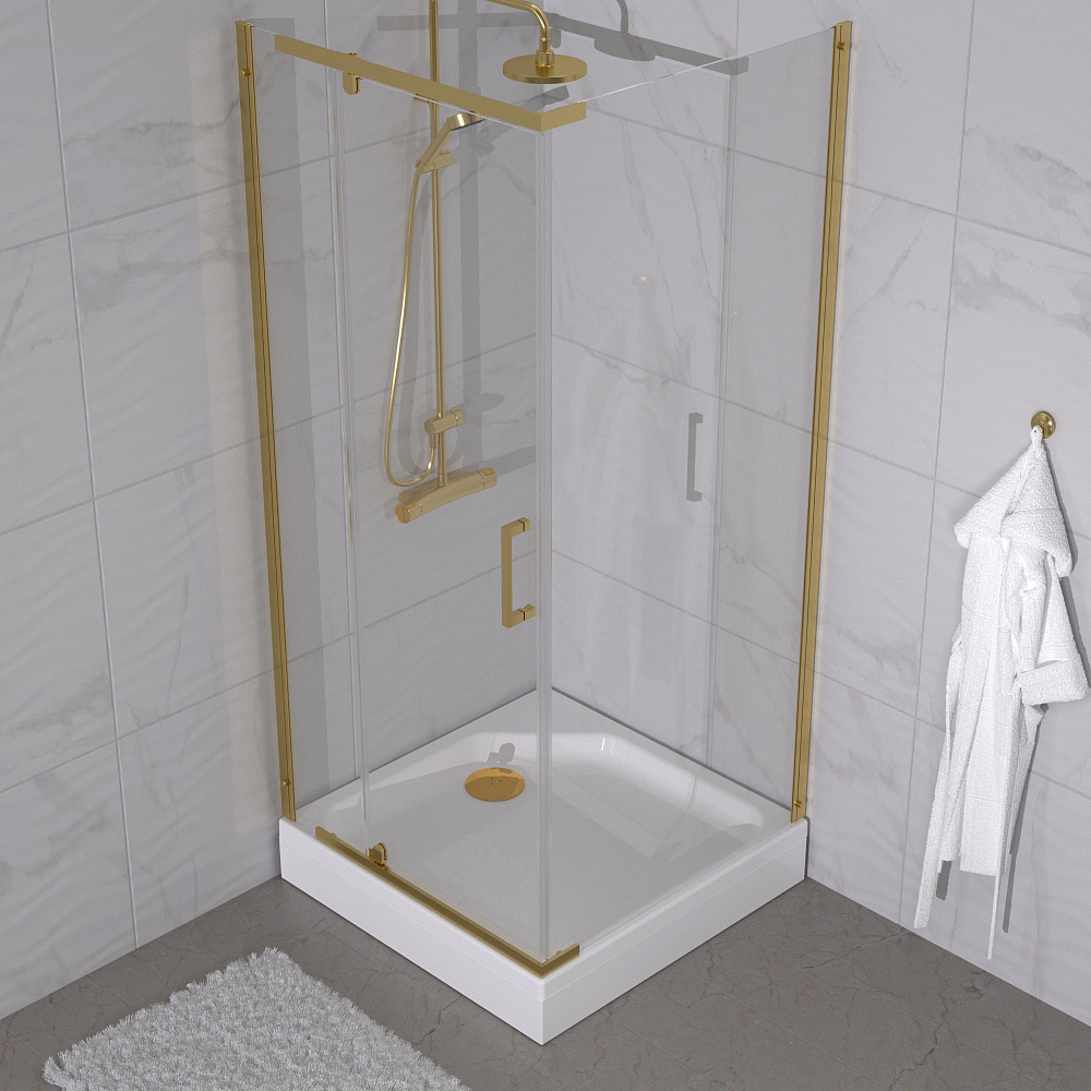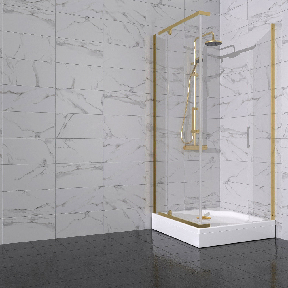 Душевой уголок Triton Терра -Голд 90х90х207, профиль золото, стекло прозрачное