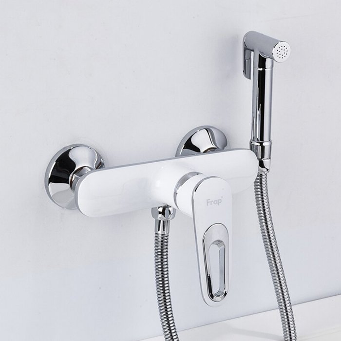 Отзывы о Гигиенический душ Frap H49 F2049 со смесителем, белый, хром