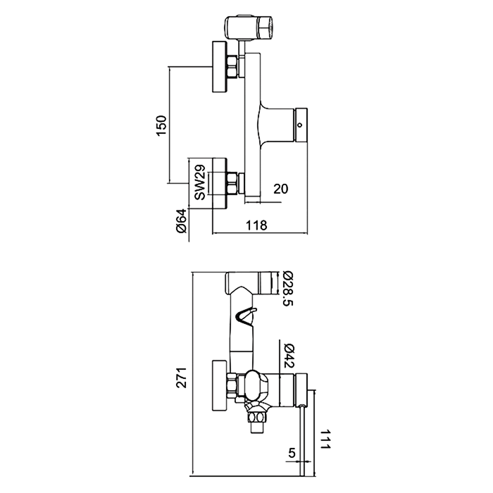 Гигиенический душ Frap H67-6 F2067-6 со смесителем, черный