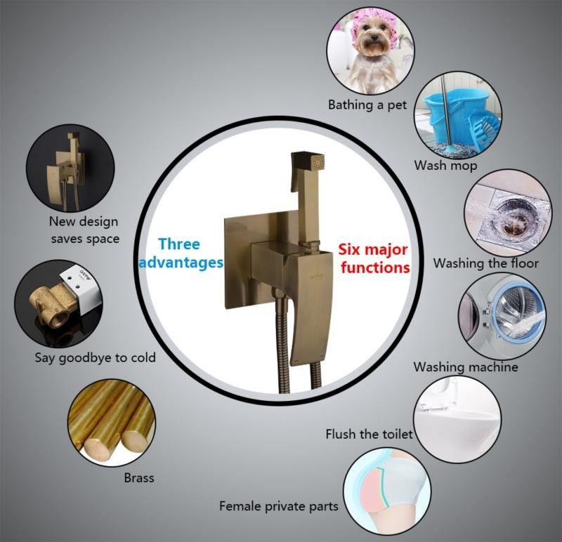 Отзывы о Гигиенический душ Gappo G07-4 G7207-4 со смесителем, С ВНУТРЕННЕЙ ЧАСТЬЮ, бронза