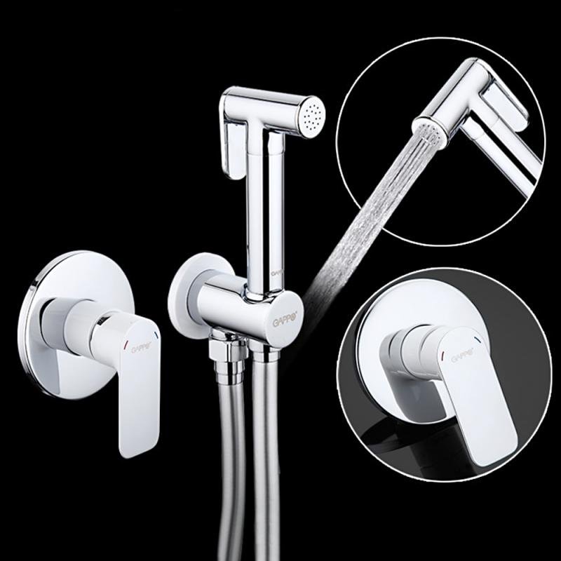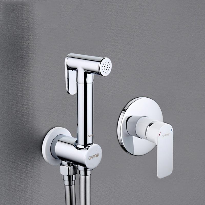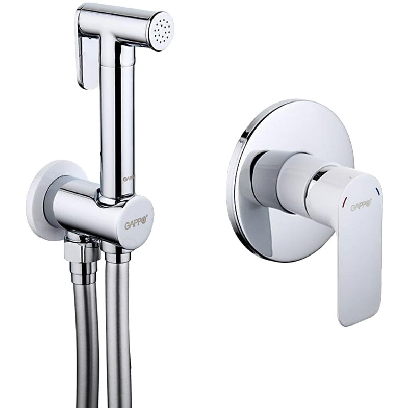 Гигиенический душ Gappo G48 G7248 со смесителем, С ВНУТРЕННЕЙ ЧАСТЬЮ, хром, белый