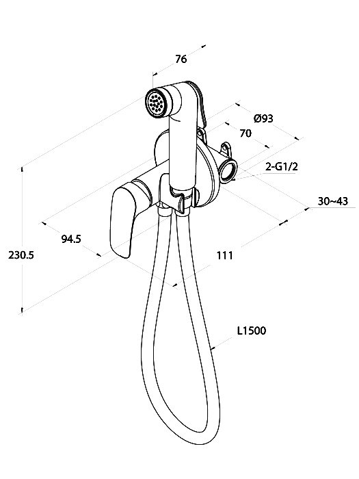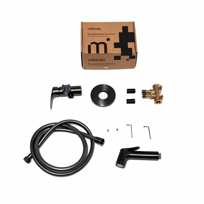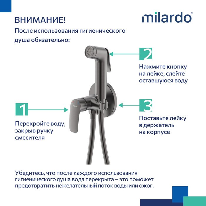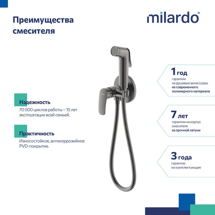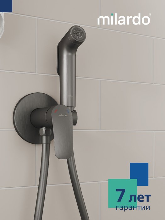 Гигиеническая лейка из ABS-пластика и душевой ПВХ-шланг (1,5 м) идут в комплекте.
