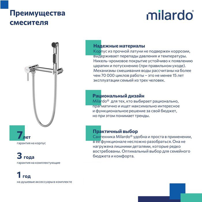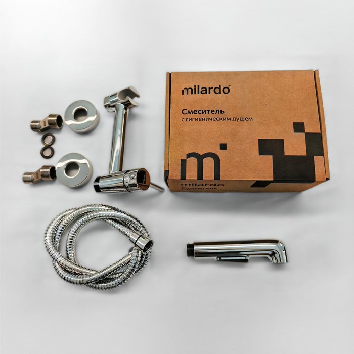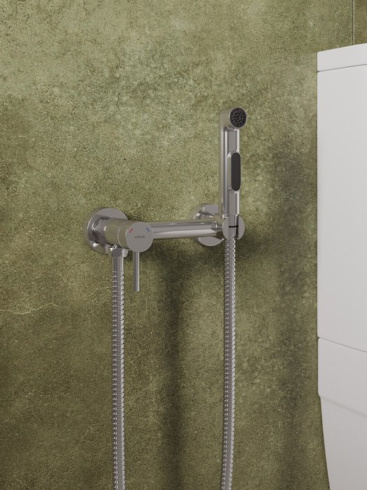 Гигиеническая лейка из ABS-пластика, душевой шланг в оплетке из нержавеющей стали (1,2 м) и крепеж идут в комплекте.