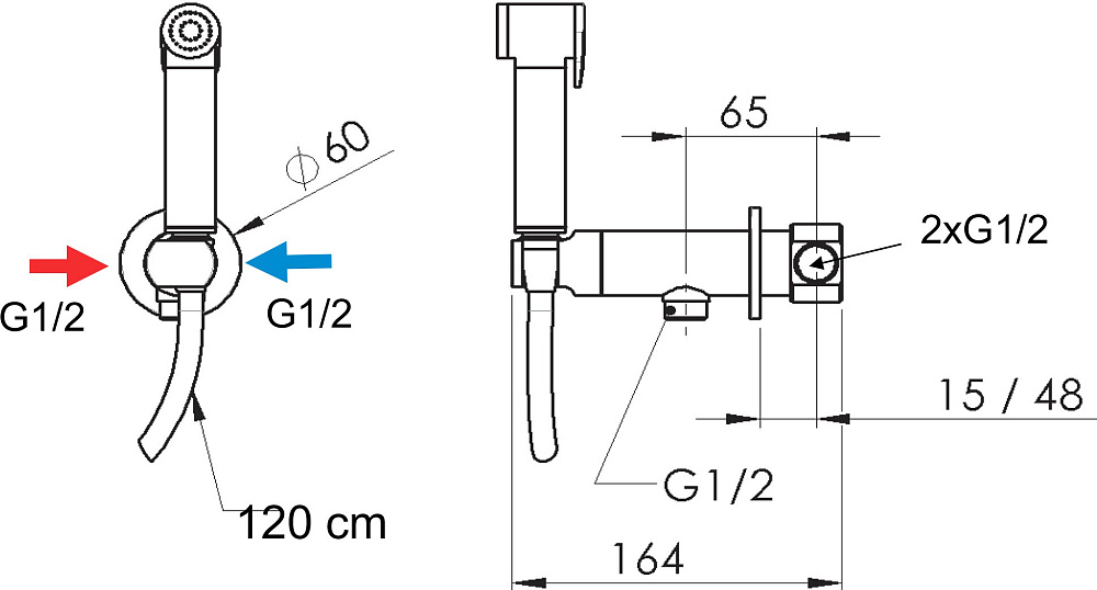 Гигиенический душ Remer X Style N64W со смесителем, С ВНУТРЕННЕЙ ЧАСТЬЮ, хром