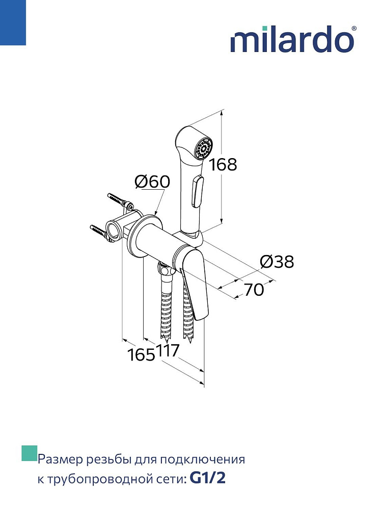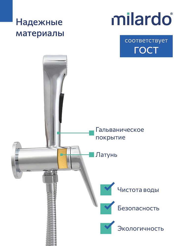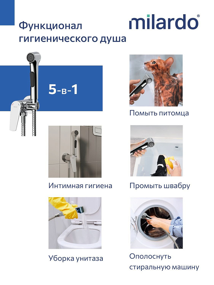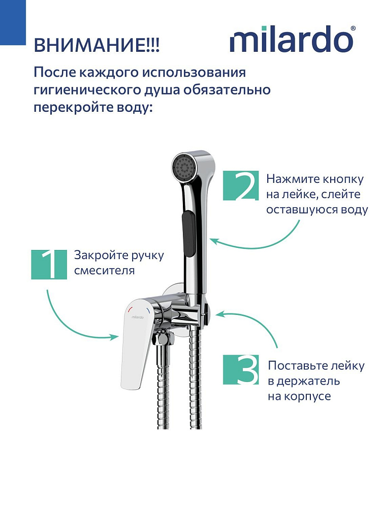 Гигиенический душ со смесителем, хром глянцевый, Milardo, Лип (Leap), LEASB00M08